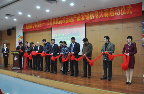 在喜庆的音乐和热烈的掌声中,王宇航副书记、江志达副行长以及出席开幕式的其他领导嘉宾上台共同为活动剪彩,预祝本次大赛圆满成功。江志达副行长以及浙江江工商大学金融学院、浙江财经学院工商管理学院相关领导分别作了讲话,表示学校和银行对本次合作都很重视,希望通过此次活动在学校和企业之间搭建一个平台,为学生提供更多实践的机会。