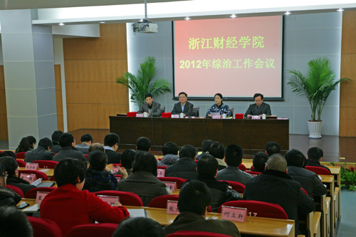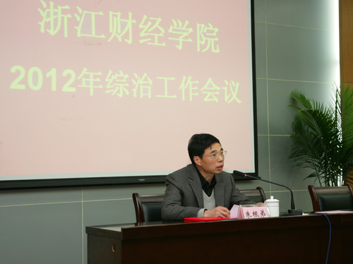 校纪委书记朱根弟在讲话中回顾了学校2011年的校园综合治理工作,总结在过去的一年里取得的成绩,也指出了存在的问题和不足。同时,朱根弟书记还就2012年校园综合治理工作进行部署,强调要以学校改革发展为中心,围绕深入开展校园综治创新、校园矛盾化解、继续巩固和深化“平安校园”建设等三项工作,积极创造和谐稳定的校园环境、依法治校的法制环境、优质高效的服务环境,为学校发展做出应有的贡献。他要求各部门、各单位把握形势,明确目标,认清校园综治管理工作所面临的挑战和机遇;开拓创新,狠抓落实,全力担负起维护校园稳定的任务和各项责任,以实际行动迎接党的十八大胜利召开。