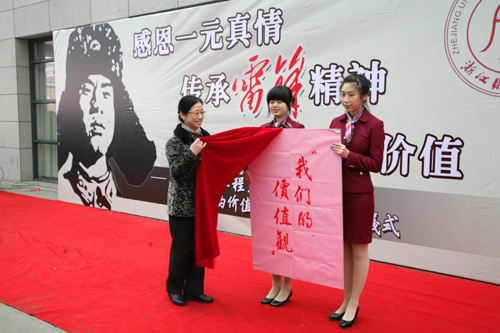 最后,王宇航副书记与到场的教师代表和各二级学院学生代表现场进行“一元钱”捐献,活动在爱心与真情中圆满落幕。虽然是小小的一元钱,但是代表了浙财师生一颗颗真诚的奉献爱的心。“在这阴雨绵绵的日子里,捐献一元钱,让自己和别人的心都暖和起来。”现场一位同学这样说道。
