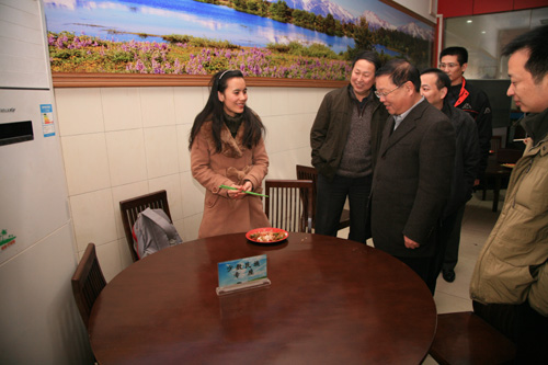1月11日中午,党委书记韩翼祥、副院长黄建新在后勤服务总公司负责人的陪同下走访了学生食堂,实地了解学生就餐情况。