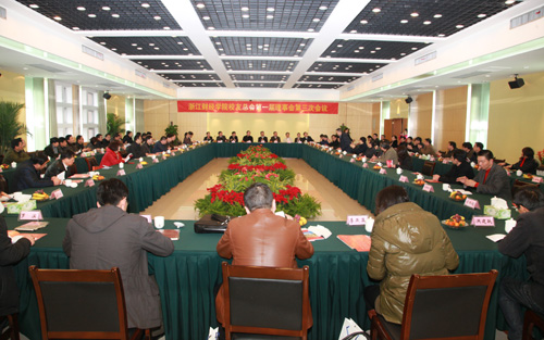 12月27日下午,我校校友总会第一届理事会第三次会议在下沙校区文化中心隆重举行。浙江省政协副主席、校友总会顾问黄旭明校友,校党政领导韩翼祥、王俊豪、王宇航、朱永康、钟晓敏、苏为华、朱根弟、黄建新、滕凯出席会议。校友总会第一届理事会理事代表和校友代表及学校有关部门学院主要负责人等100余人参加会议。会议由校友总会副理事长兼秘书长黄建新副院长主持。