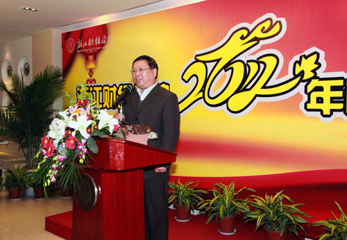 韩书记代表学校感谢各位领导、校友长期以来对母校给予的关心、帮助和支持,并向校友们致以节日的问候和良好祝愿。他还指出,在即将到来的2012年,学校将围绕建设特色鲜明的财经大学的目标不动摇,认真落实学校“十二五”发展规划,扎实推进学校各项事业又好又快发展。衷心希望校友们在新的一年里继续关心支持学校工作,为学校发展贡献力量。
