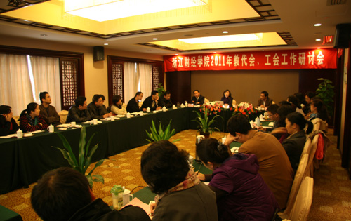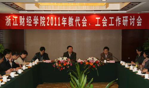 11月25-26日,我校2011年教代会、工会工作研讨会在宁波镇海召开,会议主题是“创新工会工作,推进和谐发展”,校教代会执委会、工会委员会委员、各专门委员会委员、各分工会主席、代表团团长等30余人参加了会议。会议由校党委副书记、工会主席朱永康主持。校党委书记韩翼祥,党委委员、纪委书记朱根弟,部分党总支书记应邀出席会议,省教育工会主席李逸凡教授、浙江工业大学工会主席姚继斋教授应邀作了专题报告。