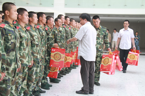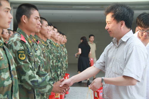 中秋佳节之际,副院长、军训工作领导小组副组长陈寿灿,在校体军部主任、军训师副师长叶东惠等陪同下,亲切慰问我校2011级新生军训承训教官,向全体教官致以节日的祝福并送上月饼等慰问品。