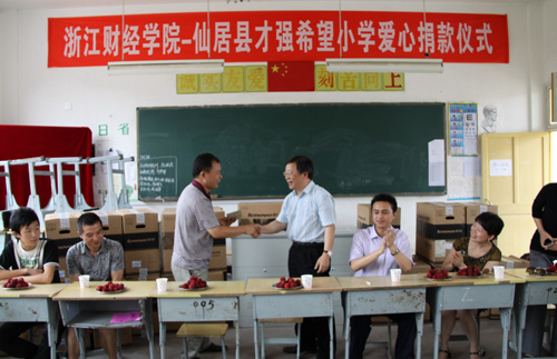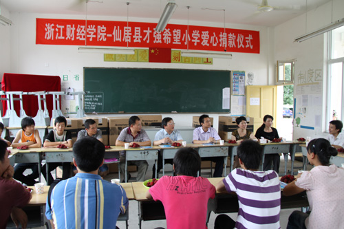 今年是希望工程在浙实施20周年,为积极响应省委省政府发出的社会各界继续参与希望工程、稳步推进省内经济欠发达地区基础教育事业发展、促进青少年成长成才的号召,7月8日下午,钟晓敏副院长一行10余人赴省内欠发达地区仙居县,走进了教学设施相对落后、办学条件相对较差的才强希望小学,为山区学校送去紧缺的教学器材,解决学生实际需要,服务社会,服务基层。(《台州日报》对此作了报道>>>链接)