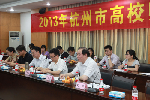 6月8日,由我校承办的2013年杭州市高校师资互聘工作会议在我校行政楼200会议室举行,来自杭州市三十多所高校的教务处负责人和相关工作人员近60人参加了会议。会议由卢新波副校长主持,王俊豪校长出席会议并讲话。