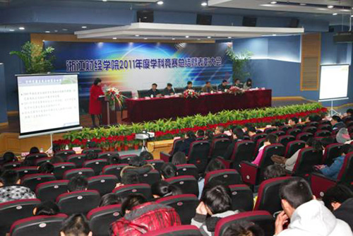 12月13日下午, 2011年度学科竞赛总结暨表彰大会隆重举行。会议分两个阶段,第一阶段表彰大会在学术中心第一报告厅举行,校纪委书记朱根弟出席会议并致辞。教务处、学生处、团委、现代教育中心负责人、各学院分管教学工作院长、分管学生工作书记,以及学科竞赛获奖学生代表及优秀指导教师参加了表彰大会,会议由教务处处长沃健主持。