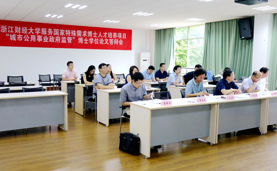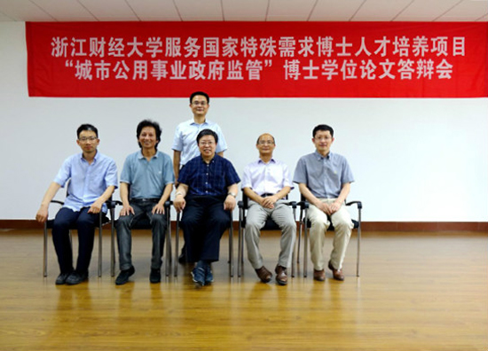 本网讯(通讯员 吴文佳 杨显波)近日,学校服务国家特殊需求博士人才培养项目——“城市公用事业政府监管”首届博士学位论文答辩会在下沙校区举行。东南大学集团经济与产业组织研究中心主任胡汉辉教授担任答辩委员会主席并主持会议,浙江理工大学胡剑锋教授,我校郭剑鸣教授、李永友教授和唐要家教授担任答辩委员。