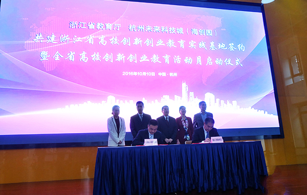 本网讯(通讯员 林健林)10月10日,浙江省教育厅与杭州未来科技城(海创园)共建浙江省高校创新创业教育实践基地签约暨全省高校创新创业教育活动月启动仪式在杭州梦想小镇举行。