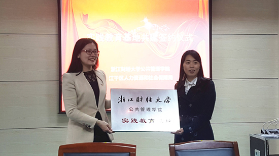 本网讯(通讯员 黄志岭)日前,公共管理学院与江干区人力与社会保障局举行实践教育基地合作签约仪式,双方就进一步推进全方位深度合作和培养优质服务人才达成了合作意向。杭州市就业管理服务局专业技能交流处处长叶金香、副处长肖春华,江干区人力社保局副局长姚燕丽,我校公共管理学院党委书记沈晓敏等出席签约仪式。