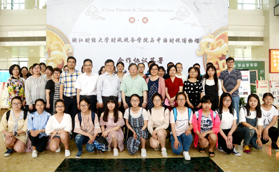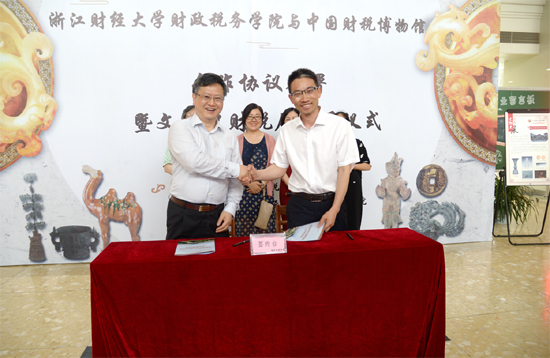 本网讯(通讯员 毕岩智)近日,财政税务学院与中国财税博物馆合作协议签署暨文物史财税展开展仪式在我校图书馆举行。中国财税博物馆馆长李玉环、副馆长傅欣,校长钟晓敏,相关职能部门、学院负责人及学生代表等出席仪式。