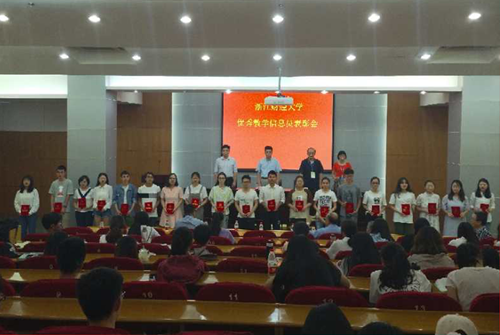 会议宣读了表彰名单,优秀教学信息员代表作了交流发言,与会领导向获奖代表颁发了获奖证书。
