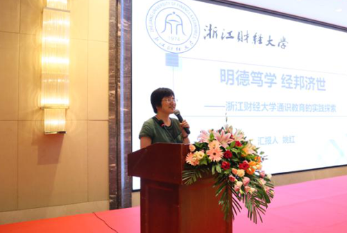 姚红教授作了题为《明德笃学 经邦济世——ued体育 通识教育的实践探索》的发言。她从浙财校训的凝练、浙财精神的概括、浙财青年的培养讲起,介绍了财大通识教育的开展情况,阐述了通识课程、通识活动和通识学科竞赛三位一体育人的思考,并提出了“消灭水课,打造金课”的通识课程建设思路。