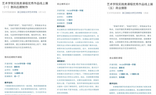 为助力学生居家学习,开学伊始,学院通过微信公众号陆续推介网络艺术公开课、精选讲座和论坛等内容,并于开课前推出了“19/20-1学期学院课程优秀作品线上展览”系列微刊,展示了上一学期优秀课程的教学内容、成果和心得。希望通过此方式,能够突破时空局限,强化师与生、教与学的交流,最终建立长期有效的全方位互动新形式。