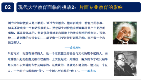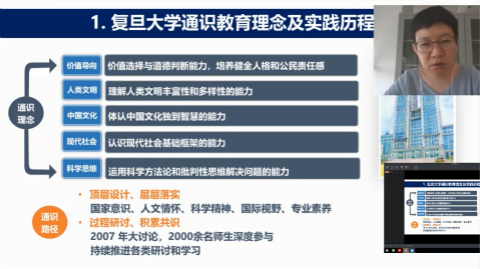 熊庆年教授围绕“通识教育的理念与实践”的主题展开论述。他首先引出了现代大学面临的问题,认为只有专才,而没有通识的人,是不能成才的,大学教育应该是全面的。他通过比较国内外专家关于通识的定义,指出通识教育的含义是培养完整的人,即具备远大眼光、通融识见、博雅精神和优美情感的人,而不仅仅是某一狭窄专业领域的专精型人才,并强调通识教育的目标是有效的思考、思想的沟通、恰当的判断和分辨各种价值。