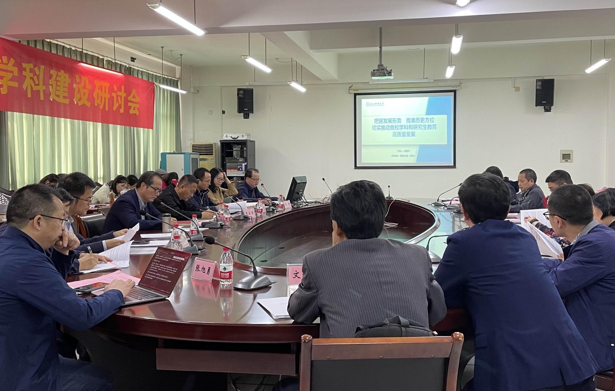 会议就当前学校学科建设与研究生教育工作面临的机遇与挑战作了介绍,分析了法学学科建设的现状与存在的短板,并就如何提炼学科优势与特色,提出了下一步工作举措。与会人员围绕学科建设和博士点申报展开了热烈讨论和交流。