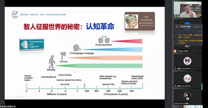 本网讯近日,复旦大学生命科学学院杨继教授做客我校通识云讲堂,作了一场题为“进化思维——洞悉宇宙、生命、社会的关联性和复杂性”的通识讲座。全校共有近1500名学生在线聆听了讲座。