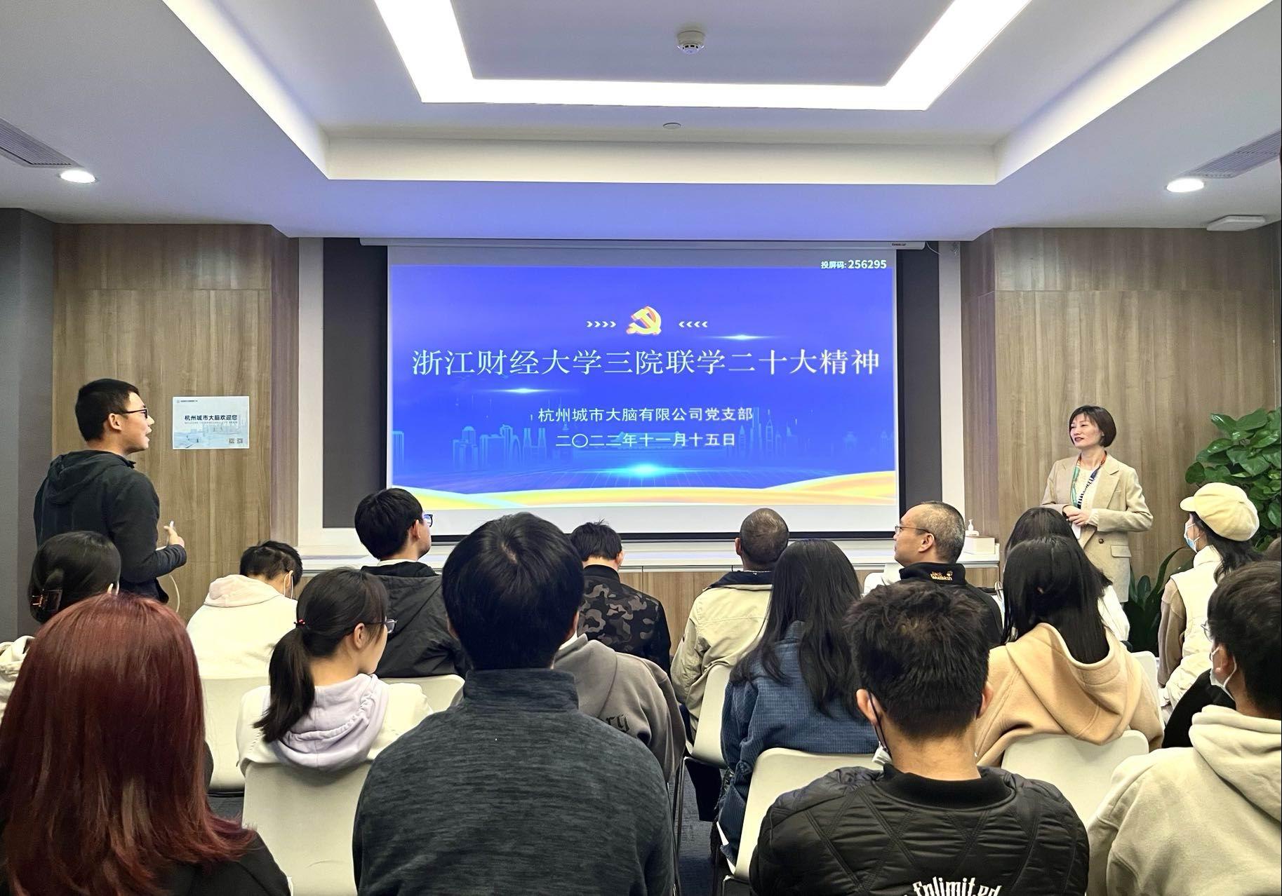 联学联建环节,陆晓红校友结合2020年3月31日习近平总书记参观杭州城市大脑运营指挥中心时对数字城市治理的重要指示精神,以“发挥数字能力,深度赋能数字化改革”为主题,并联系浙江省数字改革发展历程进行了现场教学,强调大数据、云计算、人工智能技术手段对城市治理现代化的重要性,鼓励财大学子要不断夯实交叉学科知识的基础,为中国式现代化国家的建设贡献青春力量。