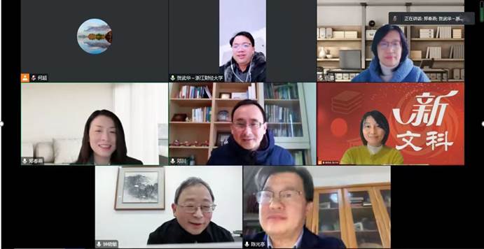 本网讯近日,学校召开教育部新文科研究与改革实践项目中期检查评审会。项目负责人钟晓敏教授、邓川教授以及浙江水利水电学院校长陈光亭教授、浙江大学教学研究处处长郑春燕教授、浙江工业大学人文社会科学学院院长蓝汉林教授、浙江工商大学教务处处长伍蓓教授等4位评审专家线上参会。会议由教务处处长贺武华主持。