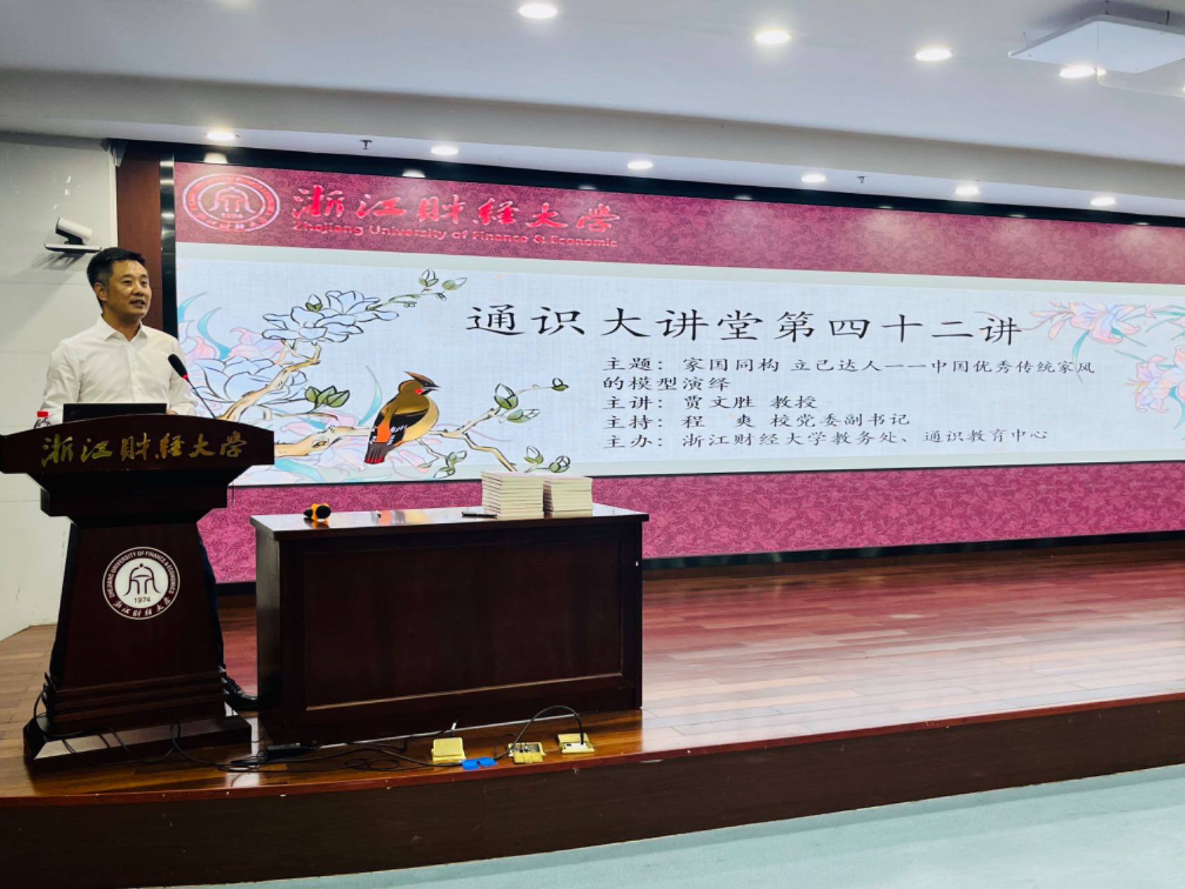 贾文胜从学理层面对家风进行了深入的探讨,围绕中国大一统文化历史溯源,阐述了儒家为人处世的内在逻辑,以及我们与世界的关系,揭示了家族家风与乡贤之间的紧密联系。他详细解读了优秀家风的模型建构,并围绕忠、孝、悌、节、养、恕、勇、俭、让、慎、行等家风进行了生动的案例分析。