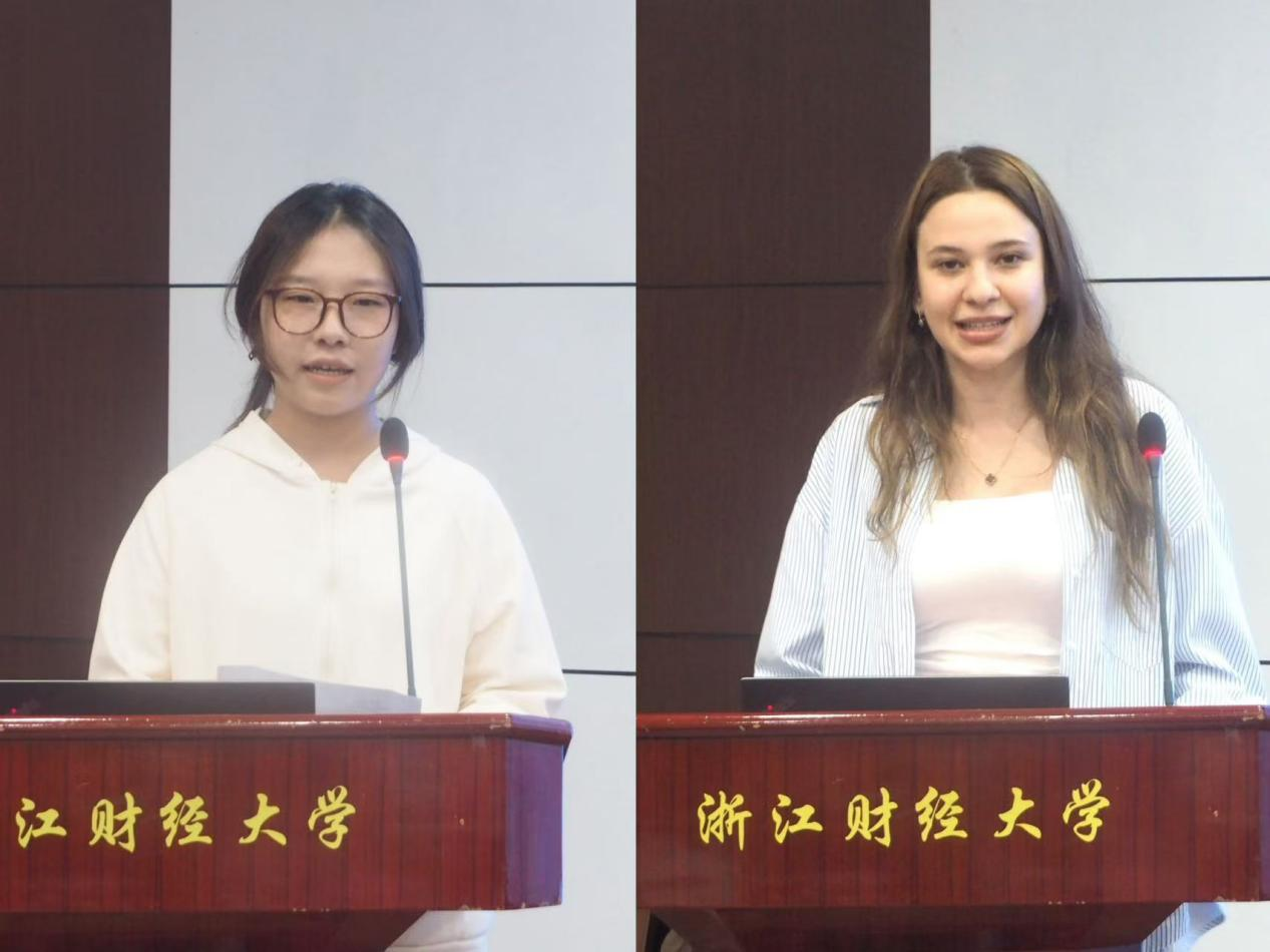 在“数贸新声”第一期演讲环节,2位数字贸易创新班班级代表分享了自己的大学初体验。会议在合唱《起风了》的美好歌声中圆满结束。