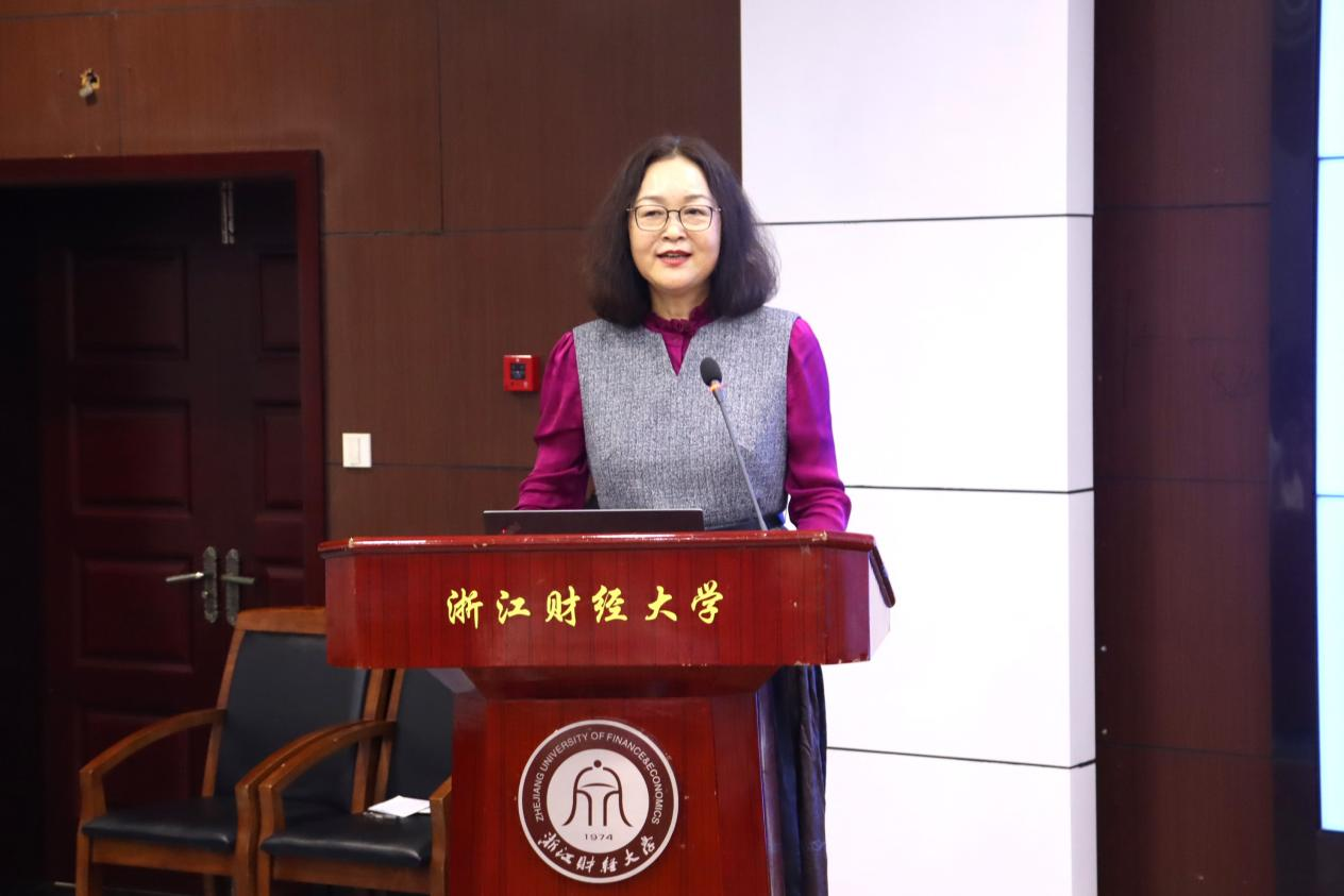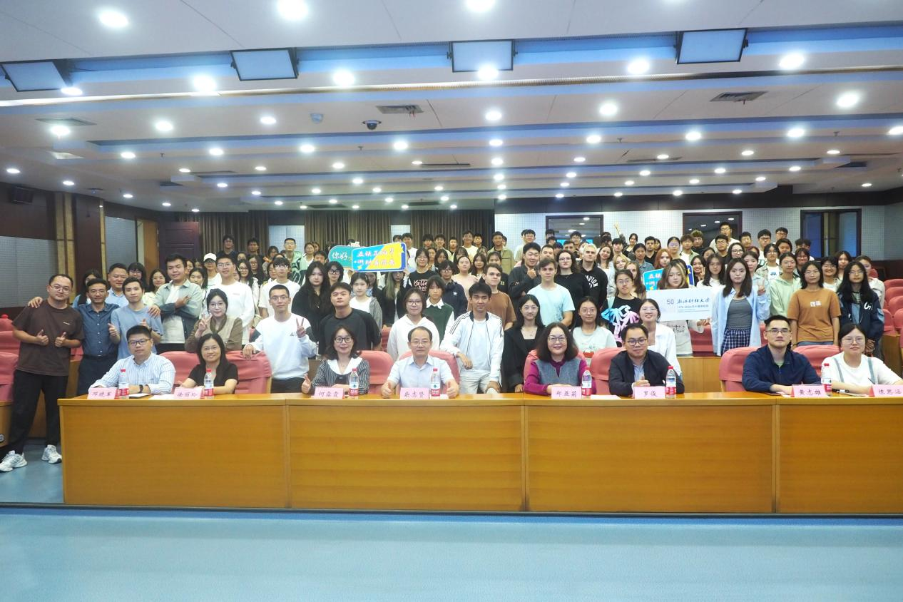 郑亚莉与学生分享了自己的成长经历与深刻感想,引用诗歌《苔》中的诗句“苔花如米小,也学牡丹开”鼓励同学们坚定理想信念,通过“数贸新声”绽放属于自己的绚烂之花,相信自己能够成长成才。她通过“团结就是力量”“爱拼才会赢”“明天会更好”三首歌给予期望,希望学生胸怀家国天下,拓宽国际视野,增强合作交流,发挥经济学院与国际学院的各自优势,在接下来的大学生涯中,脚踏实地、勇于拼搏,创造更美好的未来。