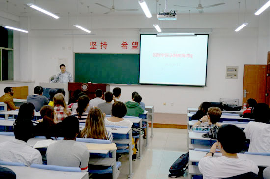 为更好地帮助留学生新生度过来华的适应期,创造良好的学习与生活环境,10月15日晚,国际学院举办了一场留学生新生法制与安全教育讲座,全体留学生新生参加了这一讲座。