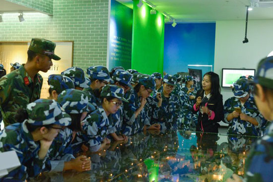 百朋宣讲队的摄影担当之一叶嘉亮最近专注于端着单反相机对新生专注听讲的脸进行各种抓拍。有时他发现了混在一群新生中间的教官,于是又是一阵快门响。他告诉我们:“没开学时我整天一直待在这里,不过开学后也只能趁着没课来校史馆拍几张。”