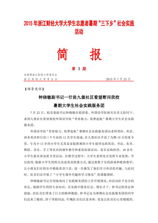2015年暑期社会实践活动简报第3期
