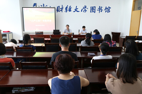 根据学校党委的总体部署和要求,图书馆党总支结合工作实际,认真开展“三严三实”专题教育,通过听、讲专题党课和召开理论中心组学习扩大会等,提高党员干部思想认识,自觉践行“三严三实”各项要求。6月23日,图书馆总支全体委员参加了分管领导卢新波副校长在数学与统计学院党总支讲授的“三严三实”专题党课,通过党课学习,大家加深了对“三严三实”的理解,进一步认识到践行“三严三实”的重要意义。