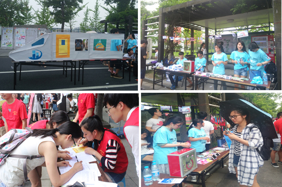 城乡规划与管理学院精心设计了回家火车的模型,并在现场播放了学弟学妹送给毕业生的祝福。“蓝潮小镇”推出的精巧手机支架深受各位同学的喜爱;青年志愿者协会的中国结寓意平安,表达了对献爱心的同学们的深深祝福;小动物保护协会则是为献爱心的同学奉上了一场小动物知识大赛,“看图识动物”等活动生动有趣,吸引了许多同学的驻足。活动期间,同学亲手制作的冰袋送给捐款的同学,给他们送去一份清凉,在献爱心的同时,更收获了一份祝福,一份对“一元钱”公益的理解。此外,各个学院志愿者也积极参与“一元钱”工程活动,结合专业特点,开展“学雷锋常态化”志愿服务活动。