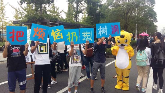 本次宣传月历时一个多月,心理健康教育中心针对全校师生主办了“阳光校园”系列培训和沙龙共16场,其中还特别邀请到浙江大学马建青教授和杭州市第七人民医院副院长陈致宇两位校外专家到校为广大师生开展讲座。举办了针对新生心理委员的“微笑传递”系列培训活动3场;完成了全校新生心理状况的普查、访谈工作;在全校范围内开展了心理健康教育主题班会。中心还举办了现场性格测试与心理咨询、大型现场涂鸦、“时间胶囊”等活动10余项。各学院开展了心理FM广播分享、“心灵树洞”、心理知识竞赛等各类活动近20项,全校师生参与万余人次。