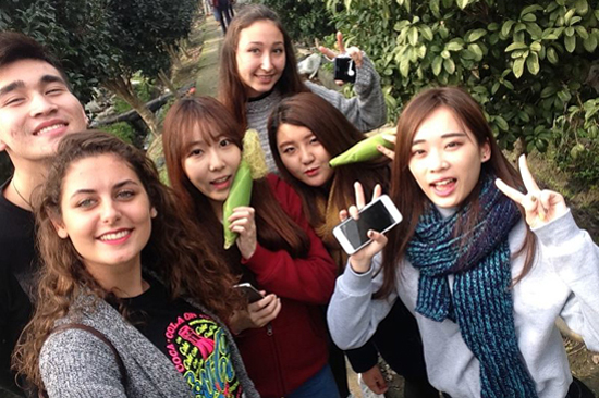 师生们兴致勃勃地来到了此行的第一站——杨家墩村,风景秀美的田野风光吸引了留学生们的目光,在当地农民的带领下,大家到田地里采摘了水果玉米与金桔,吃着自己亲手采摘的劳动成果口感特别香甜。