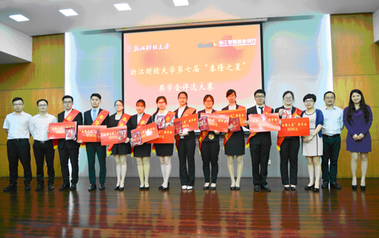 本网讯(通讯员 杨忍)5月27日下午,第七届“泰隆之星”奖学金评选大赛在我校下沙校区举行。浙江泰隆商业银行总行领导及学生处、教务处、研究生 院负责人等出席评选大赛暨颁奖仪式。