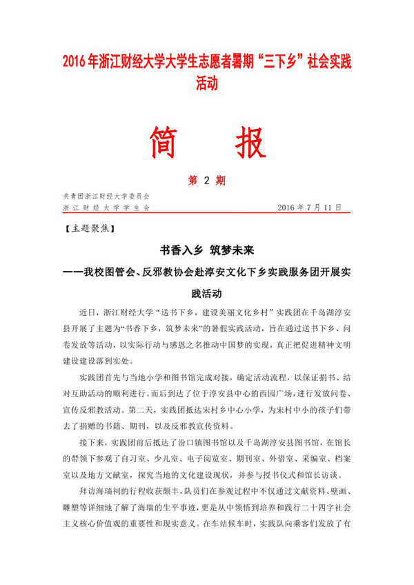 2016年暑期社会实践活动简报第2期