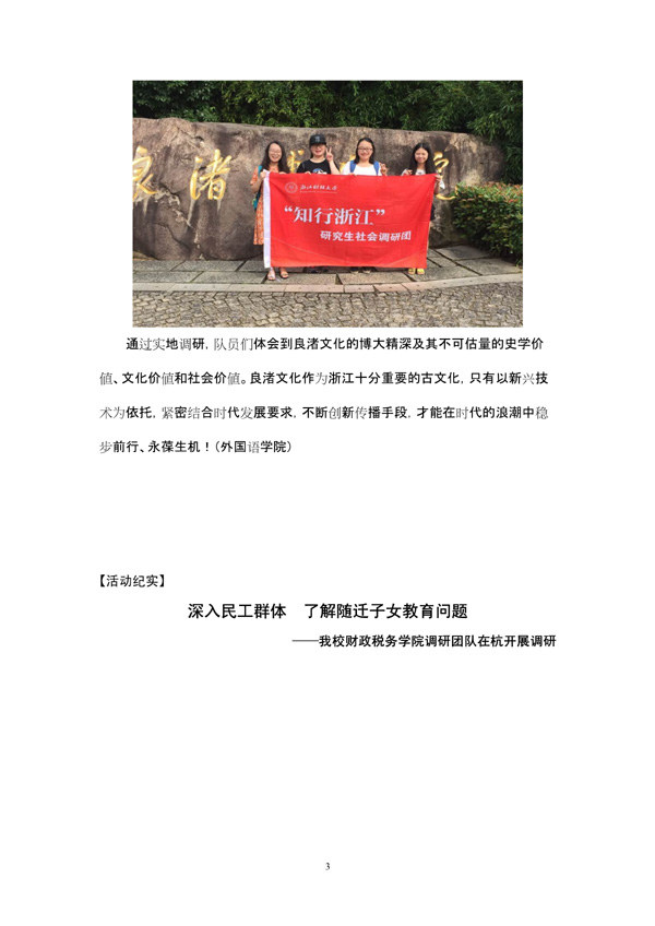 2016年“知行浙江”研究生社会调研活动简报第2期