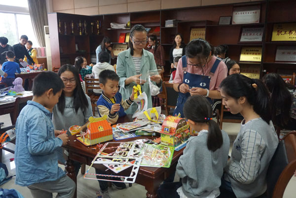 简单的热身之后,志愿者们带领小朋友做起了益智游戏,小朋友们踊跃回答,玩的不亦乐乎。部分小朋友还表演了自己拿手的节目,大胆展示自己的十八般武艺。在志愿者的带领下,小朋友们进行了美化环保袋、趣味模型拼图等一系列手工活动,大家互相配合,互相分享,而童趣盎然的动画片电影更是将此次秋假乐园活动的热烈氛围推向高潮,现场成为了欢乐的海洋。