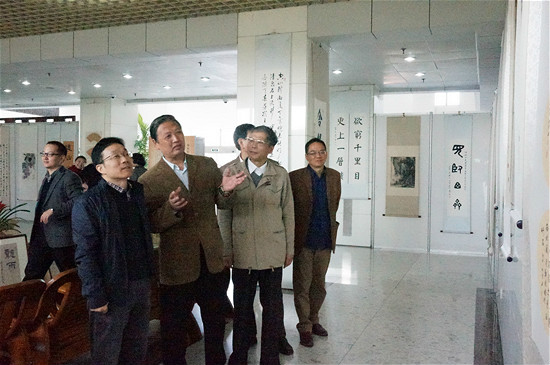 校党委副书记卢新波出席开幕式并致辞,副校长黄建新为书画展题词。卢新波在致辞中首先对本次书画展的成功举办表示祝贺,对老教工多年来在弘扬中华传统文化,推进校园文化建设方面所做的努力表示肯定。同时对我校今后进一步加强书画文化建设活动提出了希望。随后还为何建中、施益民两位同志赠送了“文房四宝”纪念品。