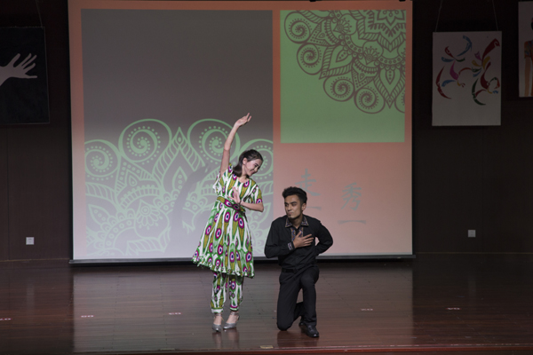 火热的开场舞点燃了全场激情。随后,各民族节目轮番上场,乌孜别克的舞蹈灵动活泼,藏族舞蹈雄厚有力,维吾尔族舞蹈婀娜热情,弗拉明戈舞桀骜不驯,塔塔尔族舞浪漫欢快……此外,还有悠扬的乌兰巴托之夜,红叶戏曲社的读西厢,校十佳歌手的助力表演以及赢得笑声无数的相声和游戏环节。艳丽多彩的民族服饰秀彰显各民族的魅力,将晚会的气氛推向了高潮。