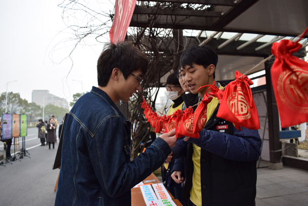 活动秉承“一元一点真情,一月一份爱心”的理念,倡导用集体的力量去帮助需要关怀的人们。虽然本周为考试周,却丝毫没减少同学们参与的热情。本次活动分为五个环节,其中“一元心意,爱暖归途”环节为同学们准备了考试用的橡皮、电子表、便利贴等,助力同学们期末考试;“一元留声,爱寄乡音”环节,让同学们留一下一句自己家乡方言,寄托乡情;“一元传统,爱满新春”环节,则让同学们把“福”(福袋与“福”字)带回家。