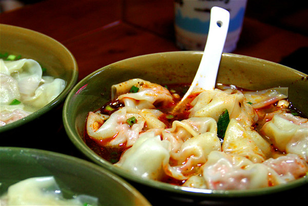 麻辣小面,重庆人对这道简单朴素的主食的热爱绝对不亚于火锅。不像其他地区吃面条时讲究的面条筋斗,汤头鲜浓,重庆小面,灵魂全都在它的佐料上。重庆人似乎特别衷于麻,老麻抄手,红红的一碗,辣的滋味倒不重,这麻是让你舌头僵直涎水直流,鼻涕眼泪噗簌噗簌得掉。