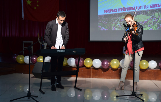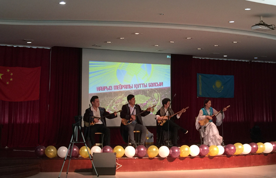 活动现场洋溢着浓浓的节日氛围,演员们身着哈萨克传统民族服饰,时而欢舞、时而歌唱,在冬不拉优美而轻快的乐声中徜徉。一段段优美的舞蹈,一首首动人的歌曲,展示了哈萨克传统文化的魅力。期间,还穿插了摔跤、掰手腕等小游戏,加油声、喝彩声此起彼伏。留学生们还亲手制作了非常丰盛的哈萨克传统美食,大家围坐在一起,边享用美食边观赏节目,其乐融融。