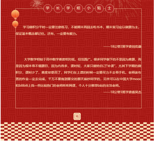 最近,公共管理学院不少学生在家忙着“刷题”。这是该院针对同学们在学习方面的薄弱环节,结合学院“双师双行”党建育人品牌推出“不一样的选修课”开展线上教学的结果。学院组织学生党员(“朋辈导师”)开展学业帮扶,通过在线补习高数微积分课程的方式,巩固提高学生学习成效,对于个别存在学习困难的同学,学生党员积极发挥先进模范带头作用,做好线上答疑工作。学院心理站“公管小树洞”品牌活动近期还推出语音直播,为有需要的同学提供在线辅导。根据学校部署,学院教师近来积极参加在线教学直播培训,落实网上教学工作。