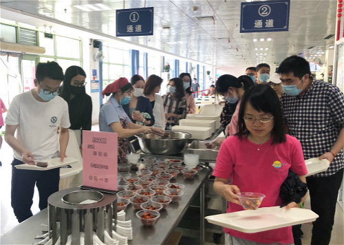 为便利教师日常生活,因疫情影响暂时搁置的“净菜售卖”活动也于“红五月”期间正式回归,后勤服务中心员工利用空闲时间处理包装菜品,并于每周固定时间在餐厅定点售卖。此外,后勤服务中心还推出了“靓汤派送”和“美味学术”主题活动,定时为全校师生员工免费供应茶汤和小菜。