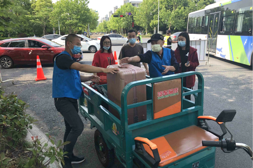 返校复课期间,为打通学生安全返校、顺利回寝的“最后一公里”,后勤服务中心安排专门车辆和人员到地铁口做好“点对点”接站服务,并为需要帮助的学生义务提供行李搬运服务,解除了返校学生的后顾之忧。