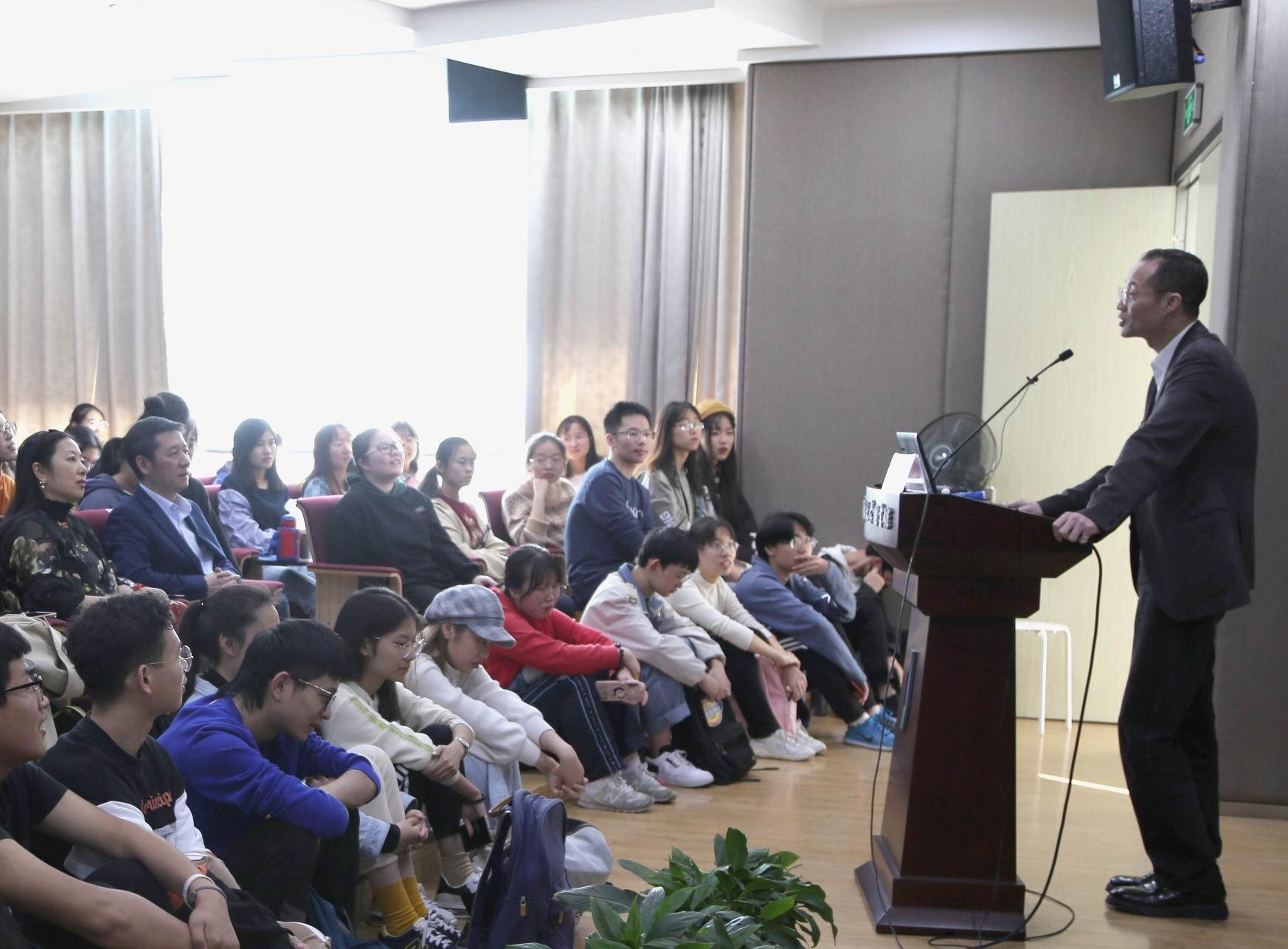 现场互动环节,周公敢博士循循善诱,热情回应同学们对哲学、对社会、对人生的疑问和看法,引发了许多共鸣与感动。大家纷纷表示,周公敢博士用企业家的理性睿智,过人的文人才气,丰富的人生阅历,宽广的人生视角,引导学弟学妹们通过广义的阅读,感知多元化的人生,为同学们指引了一条开启更多新世界大门的道路。