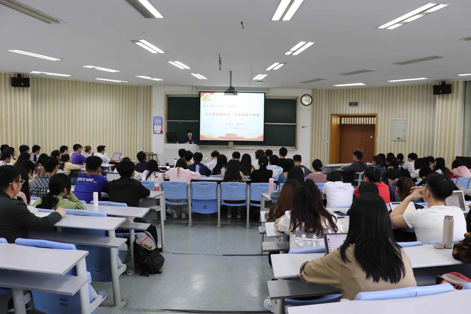 五四青年节前夕,学院“经昇”宣讲团面向党员、入党积极分子、学生干部、社团负责人等,开展了多层次、立体式、全覆盖的理论宣讲活动。学院党委书记胡亦琴讲授“学五四革命历史 话青春奋斗使命”专题党课,勉励青年学子以无悔选择融入时代发展大潮,以奉献情怀肩负民族复兴重任。学院通过开展“经廉讲堂”等形式,教育引导广大学生干部自觉践行崇廉求实精神,团结带领广大青年听党话、跟党走,牢记初心使命,赓续红色基因。