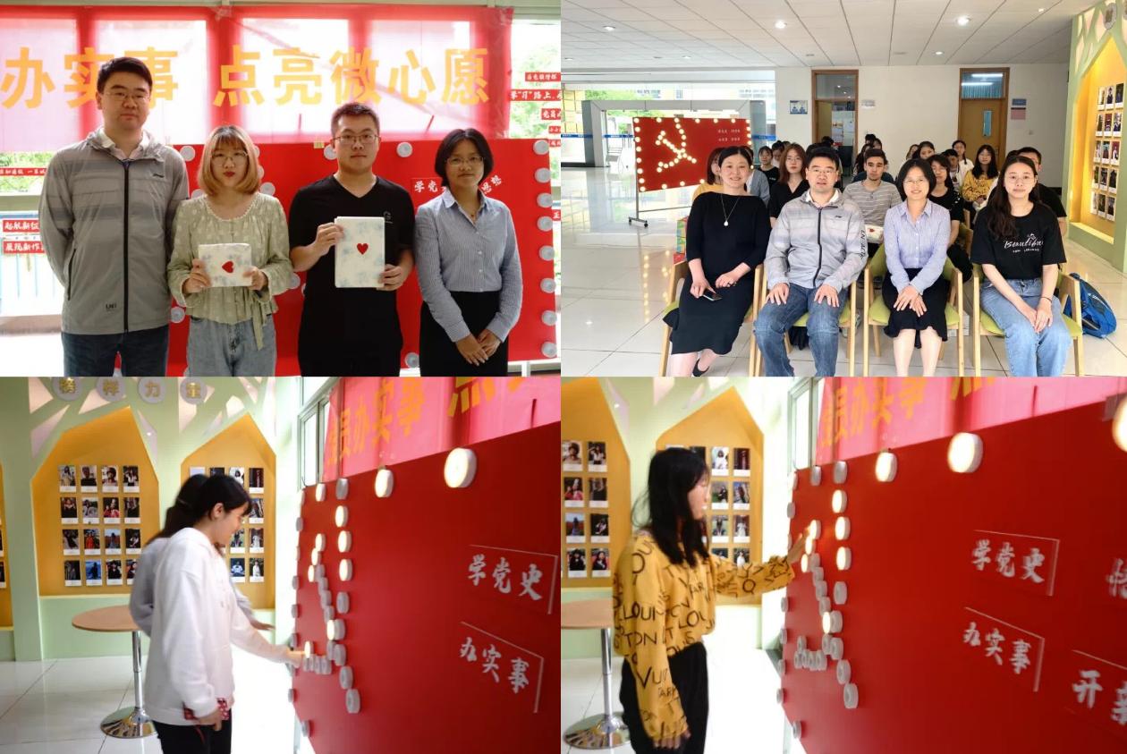 特殊的日期,精美的礼物墙。5月20日,学院还为同学们精心策划了一场“点亮微心愿”仪式。在专属的许愿墙上,每实现一个心愿就会点亮一盏小灯,最后小灯全部亮起组成了熠熠发光的党徽。在这样一个特殊的日子里,在党徽的照耀下,学院和党员教师向学生传递了爱意和关怀,把党员精神送到学生心里,也向党的百年华诞送去特殊的祝福。