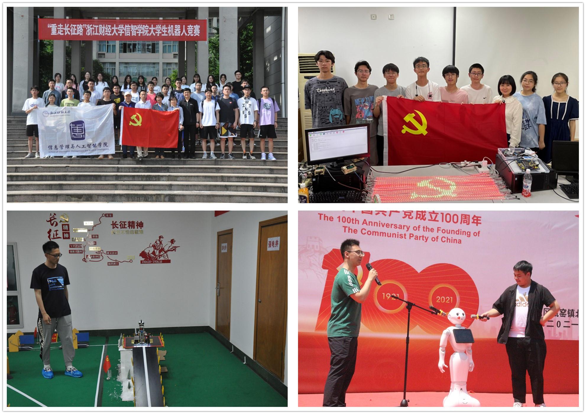 学院党委聚焦专业学习,开展“党建+人工智能”学党史系列活动。组织开展“重走长征路”机器人竞赛,开发机器人“信小智”党史宣讲员走进基层宣讲党史。党员教师朱凌在全校通识课《智能时代》上,带领红心少年用灯带通过编程,绘出动感党徽,用程序员独有的浪漫方式,向中国共产党百年华诞献上了最美好最热忱的祝福。