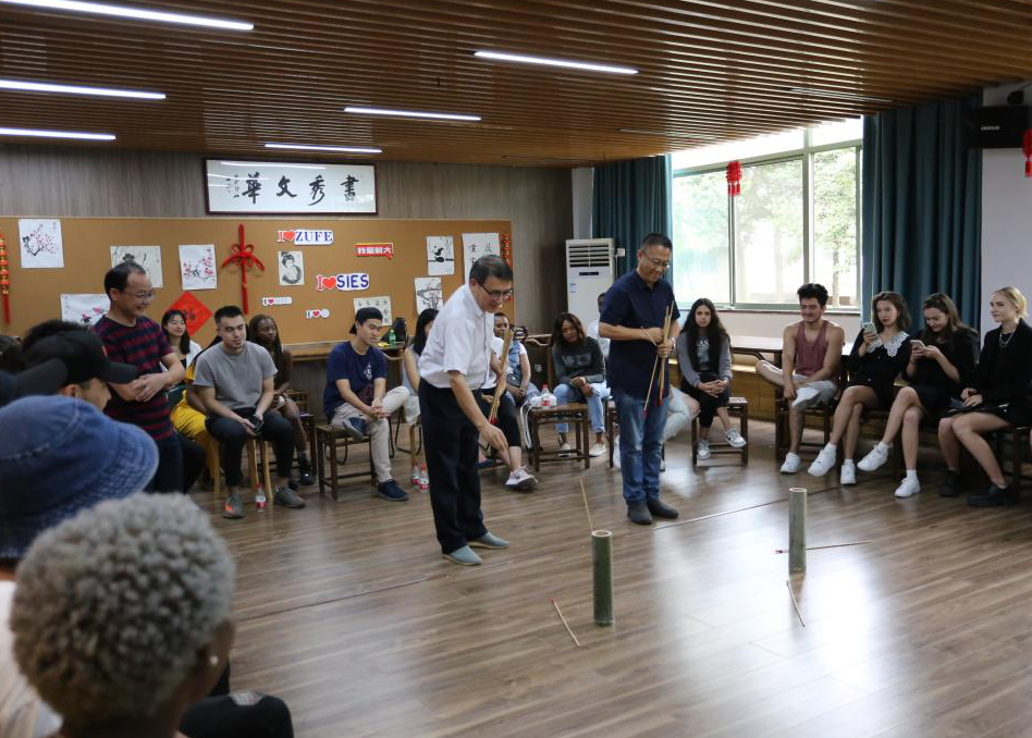 联欢会分为专题文化讲座、才艺展示和游戏互动等环节。月为题,思为媒。师生共颂静夜思,一起把水调歌头,红豆难忘有情水,翩翩起舞带衣袖,学涯清风满文华,再现盛唐箭入壶。文华书院,洋溢着欢声笑语,师生共载歌舞,共度中秋。线上,几百名留学生通过钉钉直播感受到了快乐以及来自学校遥远的祝福。他们一起哼着“月亮代表我的心”,表达着依依不舍。ZUFE对他们来说,很遥远,但一直在心间。